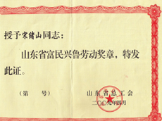 2009年4月,宋緒山被授予山東省富民興魯勞動(dòng)獎(jiǎng)?wù)?/span>